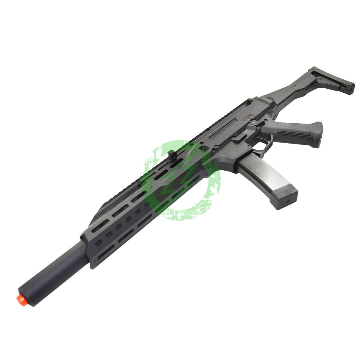 B.E.T. version of the EVO 3 A1, with the appearance of a suppressed submachinegun with extended barrel covered by a B.E.T and handguard featuring M-Lok attachment points. The CZ Scorpion EVO 3 A1 has been envisioned, developed and built by ASG, to bring the Airsoft player as close to the experience of handling the real EVO 3 as possible. Like a real gun, the EVO 3 will stop firing when its magazine runs empty, and require activation of the bolt catch after a reloaded magazine has been inserted. Where the standard in Airsoft is to replicate the exterior in appearance only, the EVO 3 is built to be as tough as the real thing. The internals have been purpose built to deliver advanced functions by using custom electronics, while having the strength necessary to handle both powerful springs and high-speed solutions.