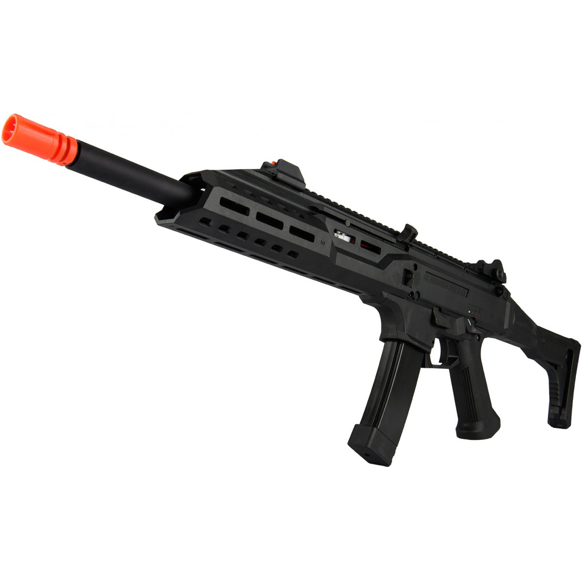 Carbine version of the EVO 3 A1 submachinegun, with extended bull-barrel and handguard featuring M-Lok attachment points. The CZ Scorpion EVO 3 A1 has been envisioned, developed and built by ASG, to bring the Airsoft player as close to the experience of handling the real EVO 3 as possible. Like a real gun, the EVO 3 will stop firing when its magazine runs empty, and require activation of the bolt catch after a reloaded magazine has been inserted. Where the standard in Airsoft is to replicate the exterior in appearance only, the EVO 3 is built to be as tough as the real thing. The internals have been purpose built to deliver advanced functions by using custom electronics, while having the strength necessary to handle both powerful springs and high-speed solutions.